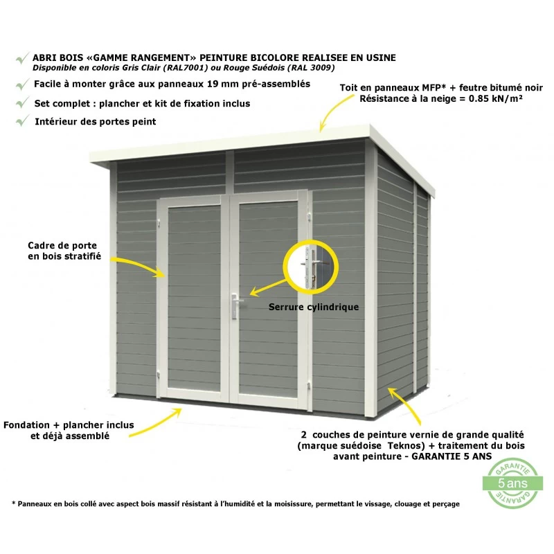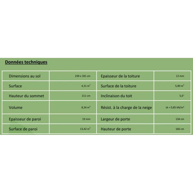 Les panneaux pré-assemblés de 19mm assurent un montage rapide et facile. La peinture Teknos, quant à elle, garantie une protection efficace contre les attaques biologiques et l’humidité.