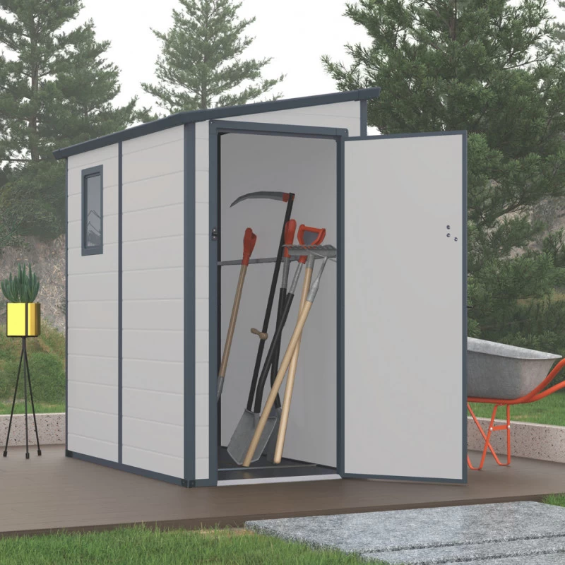 Abri De Jardin Adossé En Résine Gris Clair 2,09m² + Kit De Fondation – JOBU