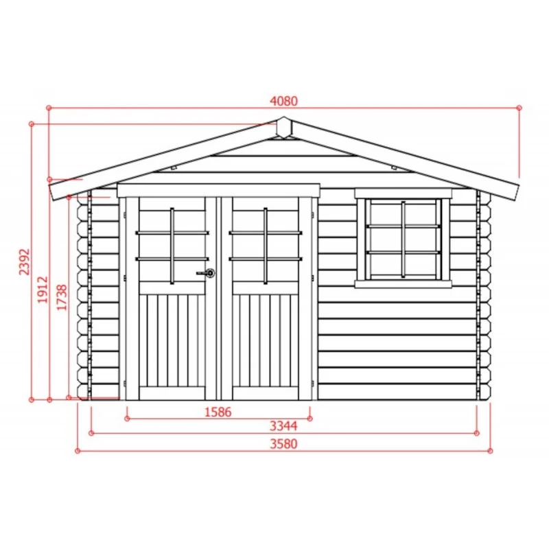 L’abri de jardin Chimay possède de belles dimensions de 358x298cm pour une surface au sol de 10,67m². Il est muni en façade d’une large double porte semi-vitrée ainsi que d’une fenêtre oscillo-battante. La double porte et la fenêtre ont un vitrage en verre trempé de sécurité, et des croisillons en bois décoratifs apportent la touche authentique d’un petit chalet de montagne. Ce modèle est livré sans enduit de finition, vous avez donc la possibilité de le décorer selon votre inspiration.