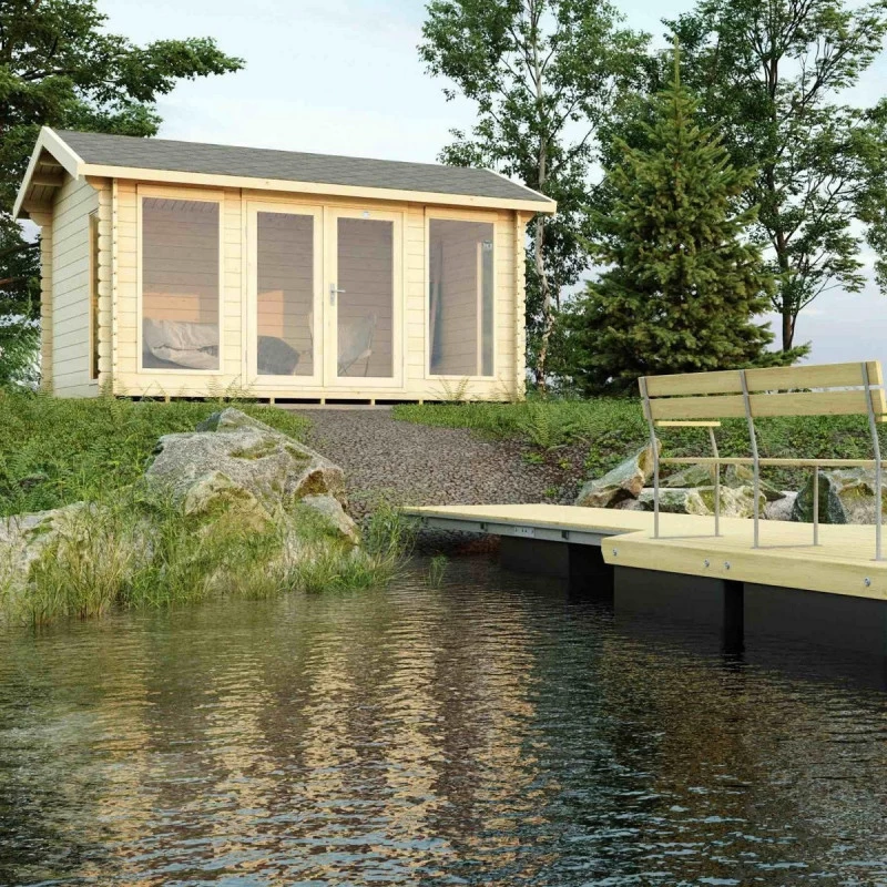 L’abri de jardin en bois 11,7m² Olos du fabricant Luoman est parfaitement isolé de l’humidité du sol avec son plancher épais de 21mm.