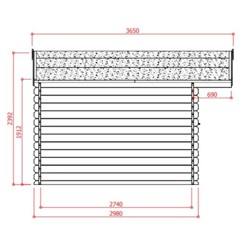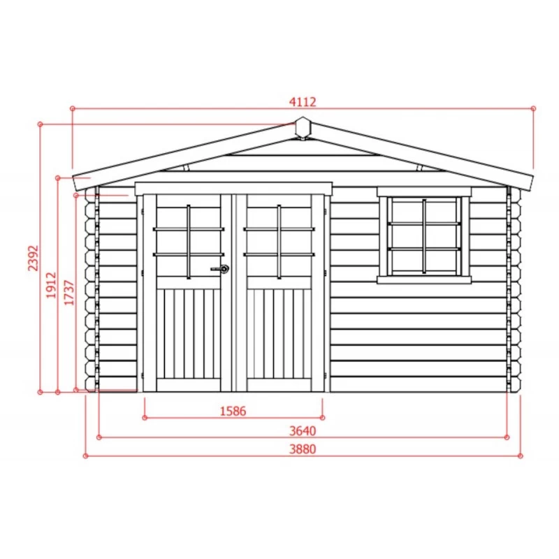 La surface est de 11,56m² pour une façade de 388cm et une profondeur de 298cm. Un débord de toiture de 69cm en façade protégera portes et fenêtres des intempéries. L’installation de l’abri doit se faire sur dalle de béton, à protéger de préférence de l’humidité du sol par une membrane étanche. Le montage est simple et rapide, et vous permet d’intervertir la double porte et la fenêtre pour correspondre à vos besoins.