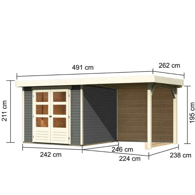 L’avis du spécialiste sur l’abri de jardin en bois massif gris terre 5,95m² Askola 3,5 avec appentis et paroi arrière – Karibu :