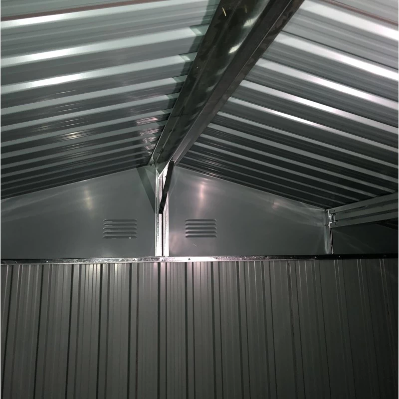 L’accès par la double porte coulissante de dimensions 163x125cm est confortable et pratique pour une optimisation de l’espace. Les panneaux situés sur le pignon sont pourvus d’ouvertures d’aération qui empêcheront un excès d’humidité néfaste aux instruments, pour une ventilation naturelle permanente. Cet abri garanti 15 ans vous est proposé par X-Metal, spécialiste des abris en métal.