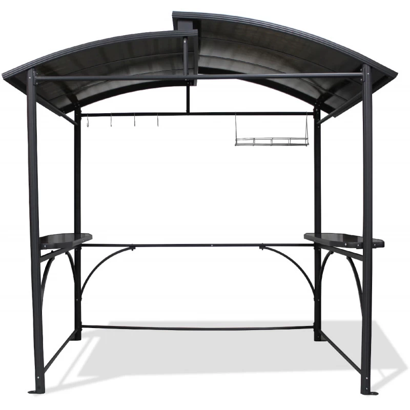 Cet abri pour barbecue en aluminium gris anthracite est pourvu d’un design élégant et épuré. Grâce à sa conception très fonctionnelle, vous pourrez faire cuire vos grillades en restant à l’abri des éléments, et disposer d’un espace de travail très confortable. L’abri est pourvu d’une toiture à deux niveaux en polycarbonate teinté de 6mm d’épaisseur, qui empêche l’accumulation de la chaleur ou des fumées, pour un tirage naturel efficace.