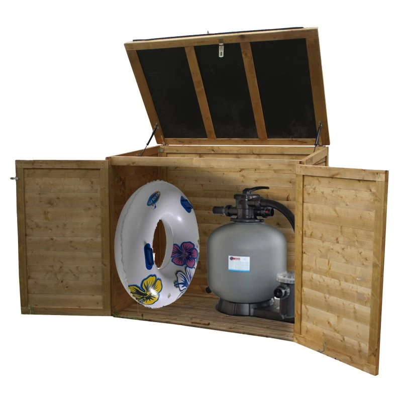 Ce coffre de jardin en bois est la solution parfaite pour ranger vos outils de jardinage, vos accessoires de pêche, vos coussins et pourquoi pas vos poubelles (2 poubelles de 240L). Sa capacité de 1350L est même suffisante pour stocker l’équipement technique pour une piscine !