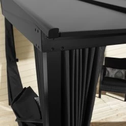 Le pavillon Charleston adossé sera un complément exceptionnel pour l’aménagement de votre terrasse. Avec une largeur de 298,5cm pour une longueur 502cm, sa hauteur faîtière de 244,5cm développe un volume confortable et ample, propice à l’installation d’un salon de jardin ou d’un jacuzzi. Il possède une structure robuste en aluminium gris thermolaqué qui ne craint pas la corrosion et qui peut soutenir une charge de neige exceptionnelle de 150kg/m². Le pavillon est composé de 11 panneaux, dont 9 fenêtres à guillotine et 2 portes coulissantes de 102cm de passage pour une hauteur de 201cm. Montage des portes possible sur le côté droit, gauche et/ou avant.