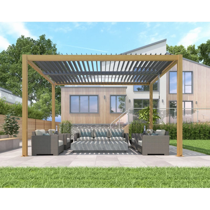 Pergola Bioclimatique Autoportante En Aluminium Aspect Bois 4x3m - X-METAL