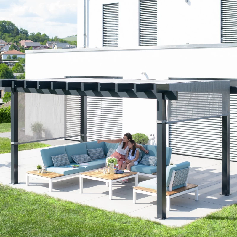 L’avis du spécialiste sur la pergola Yamba 14,6m² en aluminium anthracite avec store rétractable – SOJAG