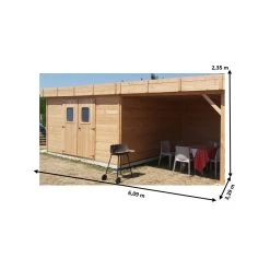 Abri Toit Monopente En Douglas DALMAT 5,62m² Madriers 20mm + Couverture Onduline – HABRITA