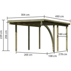 Carport Simple En Bois Autoclave Avec Toit PVC Et 1 Arc D’entrĂ©e 14,9m² – 304x490cm – Karibu